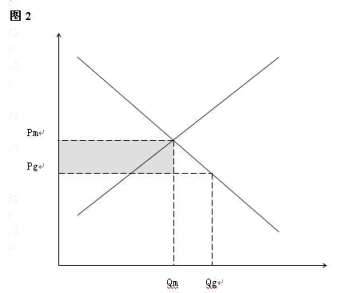 即使是政府,也有预算约束。当获得土地的价格大大低于市场均衡价格时,对土地的需求就会大大超过均衡水平。见图2。图中,由市场决定的土地价格是Pm,在此价格下,对土地的供求均衡点是Qm;而当由政府征用土地时,土地价格被压低到Pg,对土地的需求就增加为Qg。大大超出了市场决定的均衡水平。所以,所谓的“保护耕地”的制度和政策,却导致了对耕地的更多的侵占。